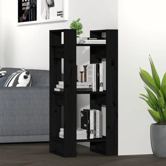 The Living Store Knjižna omara/pregrada črna 41x35x91 cm trdna borovina - Knjižna Omara
