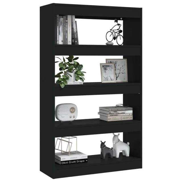 The Living Store Knjižna omara/pregrada črna 80x30x135 cm iverna plošča - Knjižna Omara