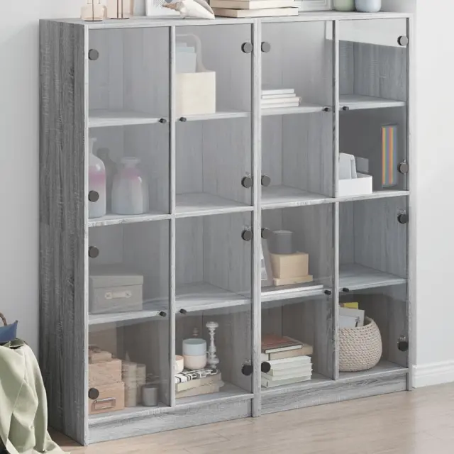 The Living Store Knjižna omara z vrati siva sonoma 136x37x142 cm inženirski les - Knjižna Omara