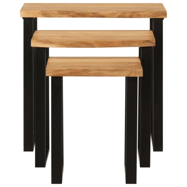 The Living Store Komplet mizic 3 kosi z naravnim robom trden akacijev les - Komplet Mizic