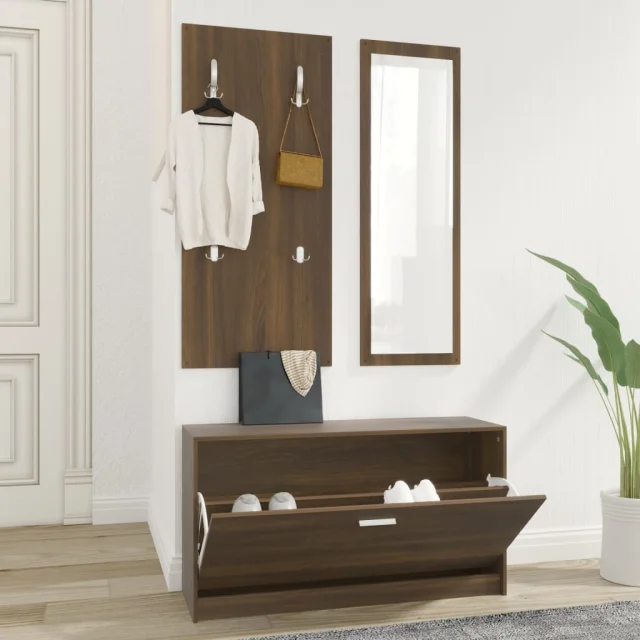 The Living Store Komplet omaric za čevlje 3 v 1 rjavi hrast inženirski les - Komplet Omaric Za Čevlje