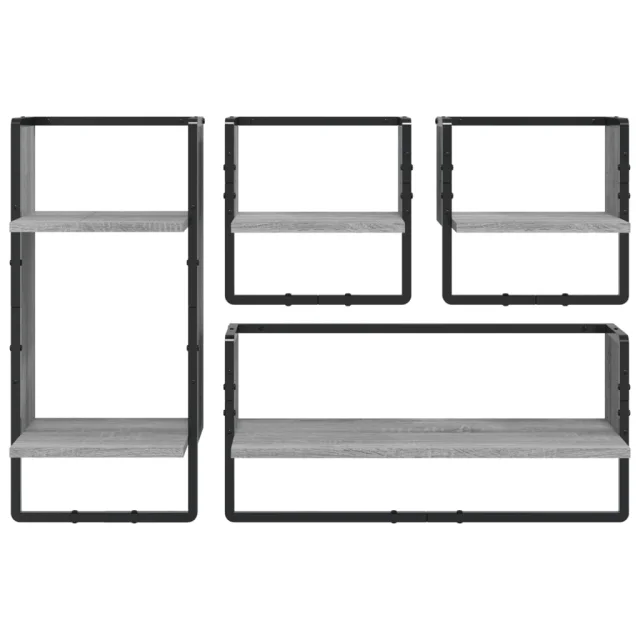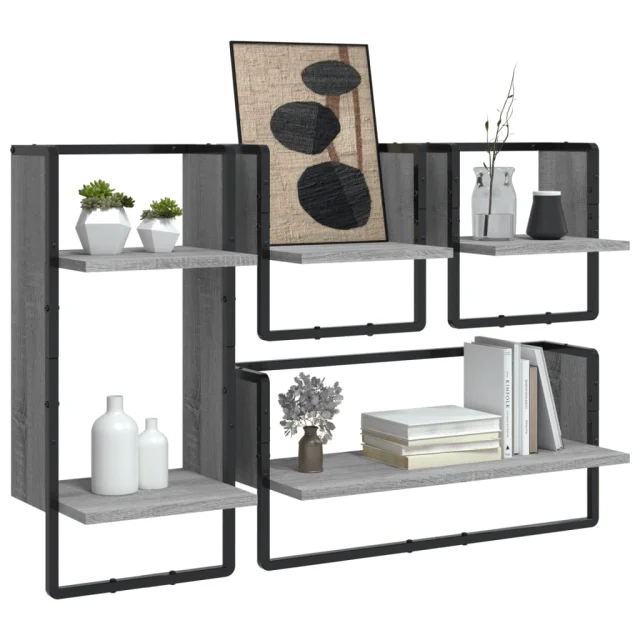 The Living Store Komplet stenskih polic s prečkami 4-delni siva sonoma inž. les - Komplet Stenskih Polic