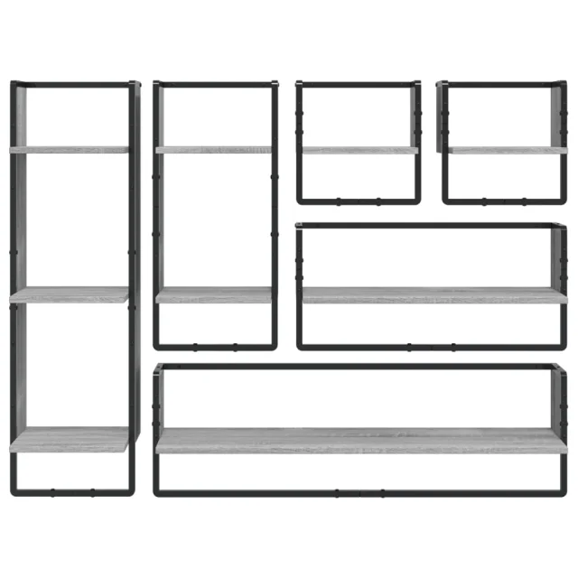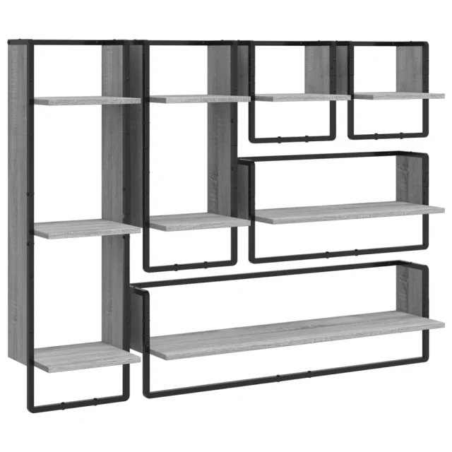 The Living Store Komplet stenskih polic s prečkami 6-delni siva sonoma inž. les - Komplet Stenskih Polic