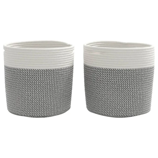 The Living Store Košara za shranjevanje 2 kosa siva in bela Ø28x28 cm bombaž - Košara Za Shranjevanje