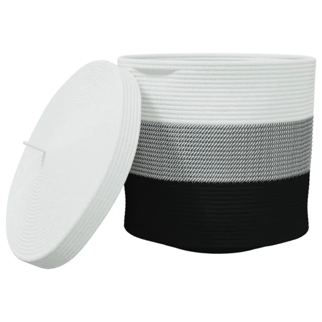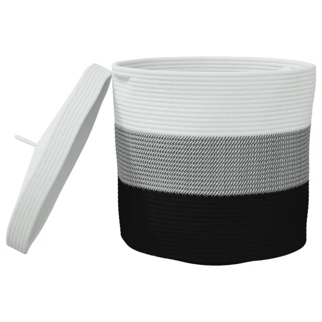 The Living Store Košara za shranjevanje s pokrovom bela in črna Ø40x35 cm bombaž - Košara Za Shranjevanje