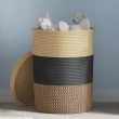 The Living Store Košara za shranjevanje s pokrovom črna in bež Ø37x50 cm bombaž - Košara Za Shranjevanje