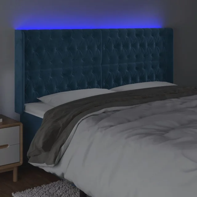 The Living Store LED posteljno vzglavje temno modro 203x16x118/128 cm žamet - LED Vzglavje