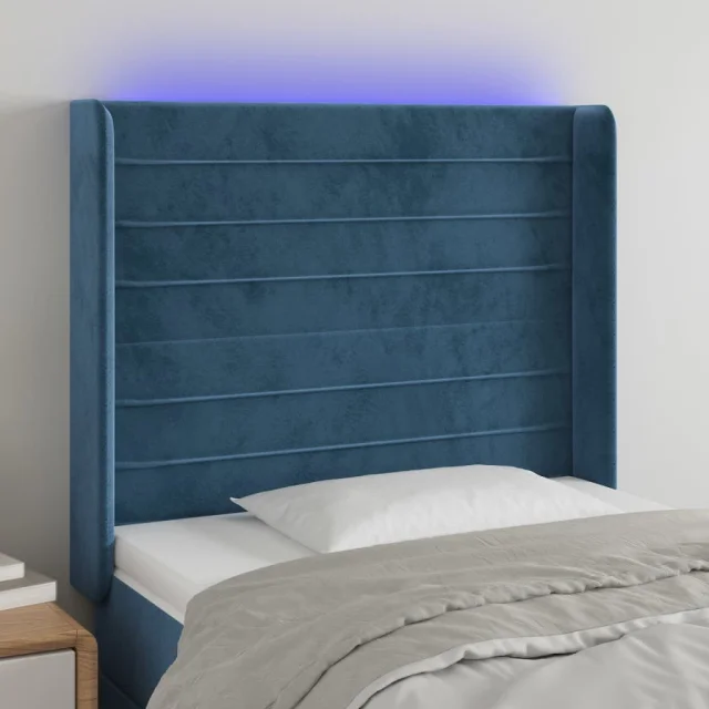 The Living Store LED posteljno vzglavje temno modro 83x16x118/128 cm žamet - LED Vzglavje