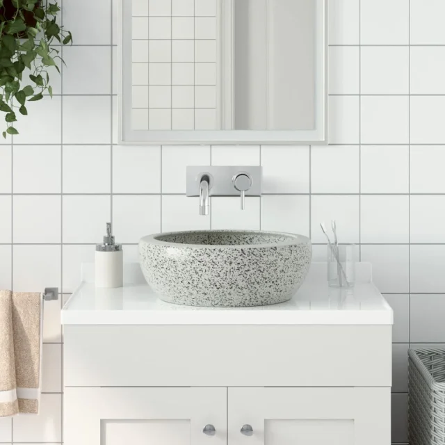 The Living Store Nadpultni umivalnik siv okrogel Φ41x14 cm keramika - Nadpultni Umivalnik