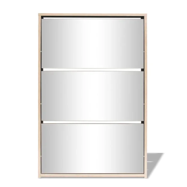 The Living Store Omarica za čevlje 3 nadstropna z ogledalom hrast 63x17x102,5 cm - Omarica Za Čevlje