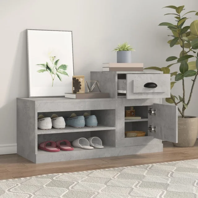 The Living Store Omarica za čevlje betonsko siva 100x42x60 cm inženirski les - Omarica Za Čevlje