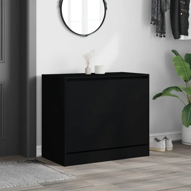 The Living Store Omarica za čevlje črna 80x42x69 cm inženirski les - Omarica Za Čevlje