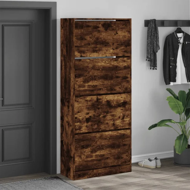 The Living Store Omarica za čevlje s 4 predali dimljeni hrast 80x34x187,5 cm - Omara Za Čevlje