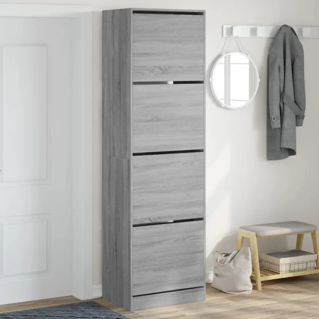 The Living Store Omarica za čevlje s 4 predali siva sonoma 60x42x204 cm - Omara Za Čevlje