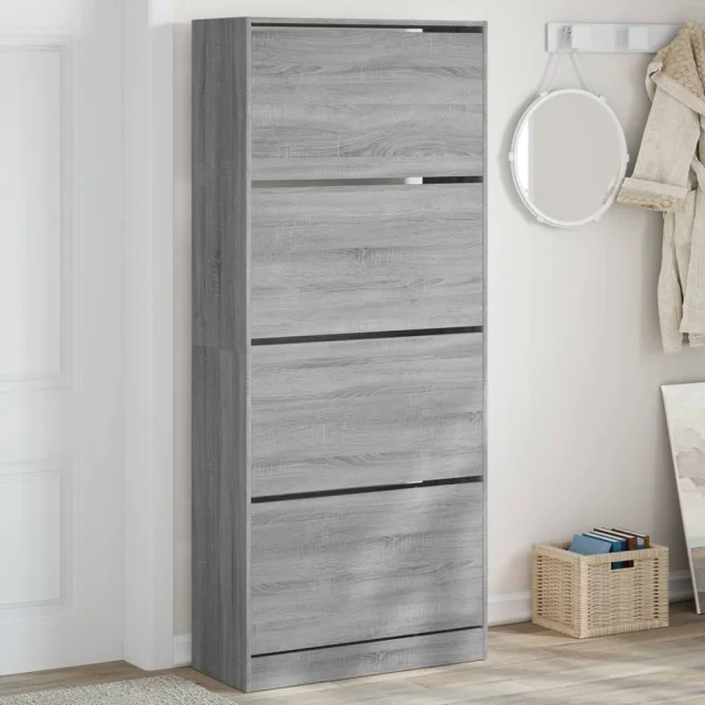The Living Store Omarica za čevlje s 4 predali siva sonoma 80x34x187,5 cm - Omara Za Čevlje