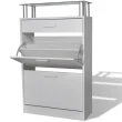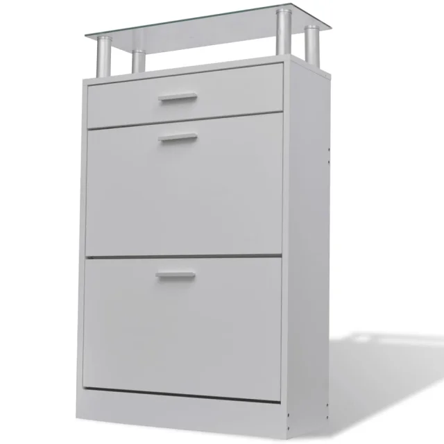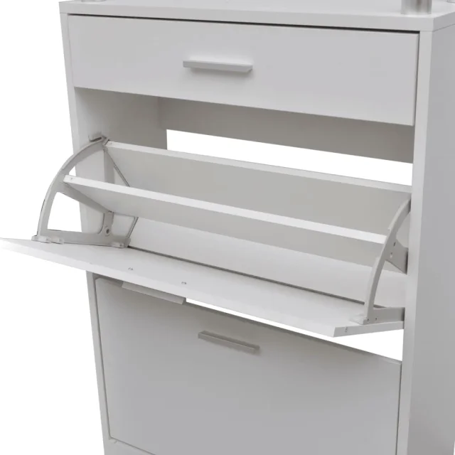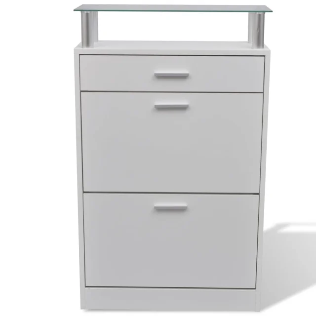 The Living Store Omarica za čevlje s predalom in stekleno polico les bele barve - Omarica Za Čevlje