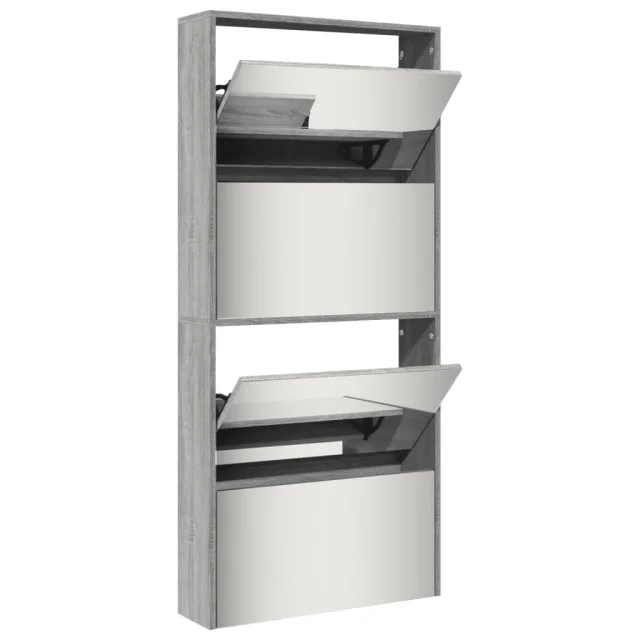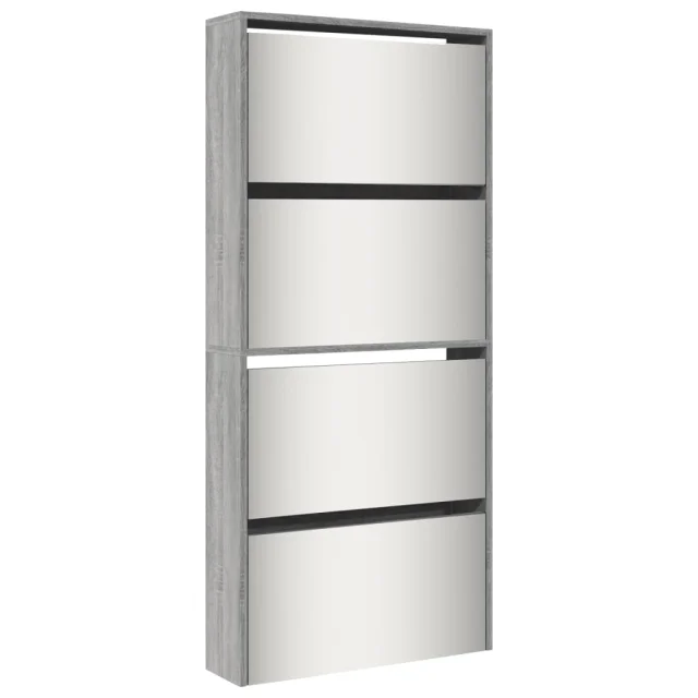 The Living Store Omarica za čevlje z ogledalom 4-nadstropna siva 63x17x134 cm - Omarica Za Čevlje
