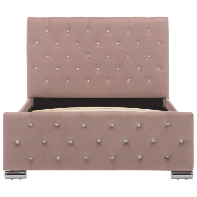 The Living Store Posteljni okvir roza žamet 100x200 cm - Posteljni Okvir