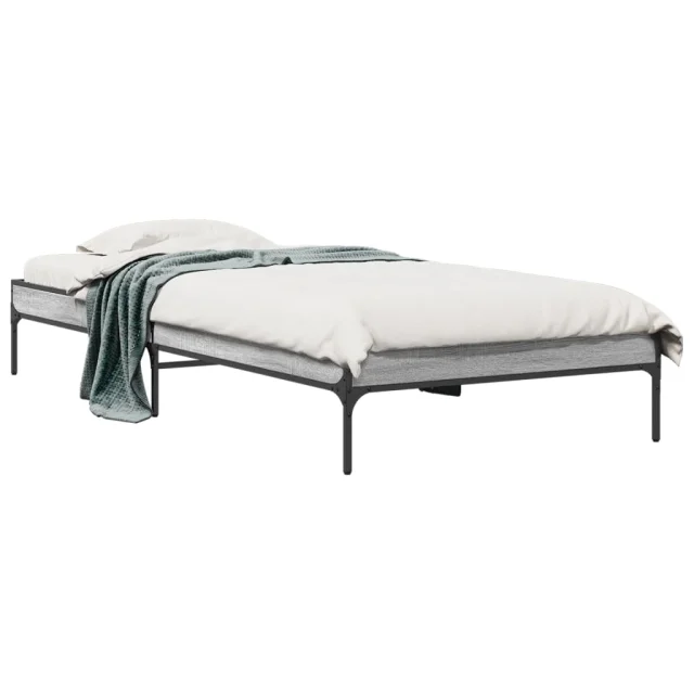 The Living Store Posteljni okvir siva sonoma 90x190 cm inženirski les in kovina - Posteljni Okvir