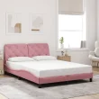The Living Store Posteljni okvir z LED lučkami roza 140x200 cm žamet - Posteljni Okvir