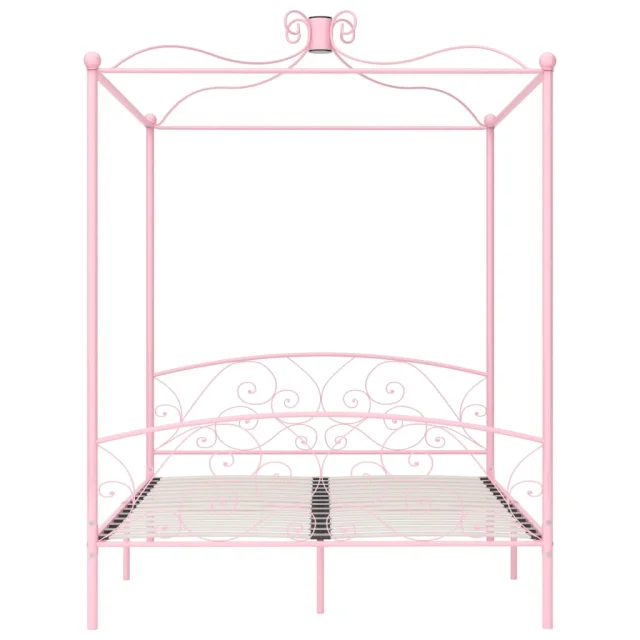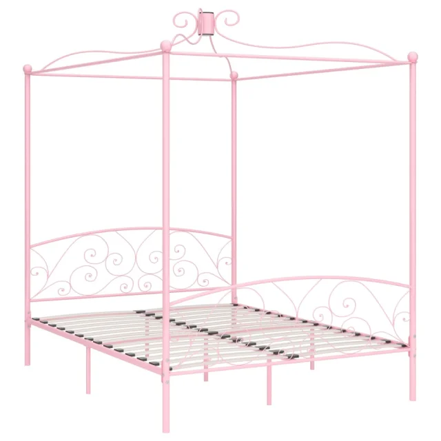 The Living Store Posteljni okvir z ogrodjem za baldahin roza kovinski 180x200 cm - Posteljni Okvir