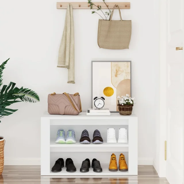 The Living Store Regal za čevlje bel 75x35x45 cm inženirski les - Stojalo Za Čevlje