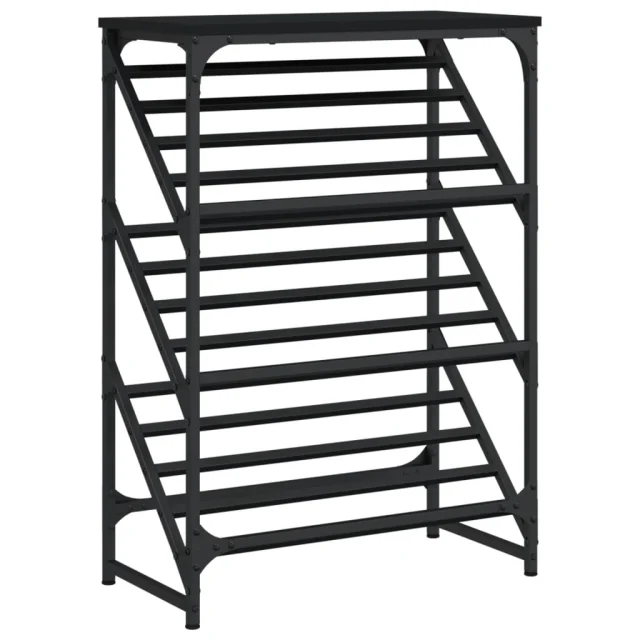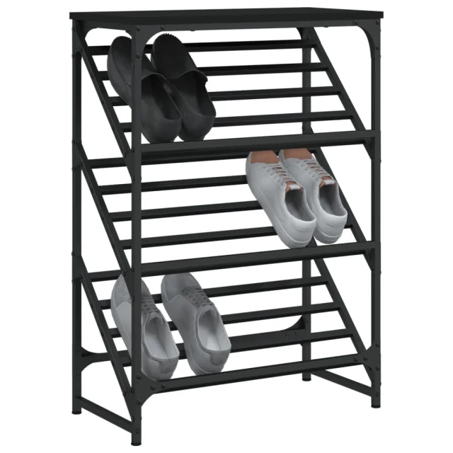 The Living Store Regal za čevlje črn 60x30x85 cm inženirski les - Regal Za Čevlje