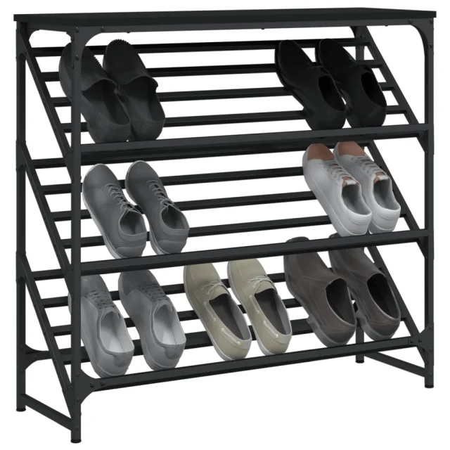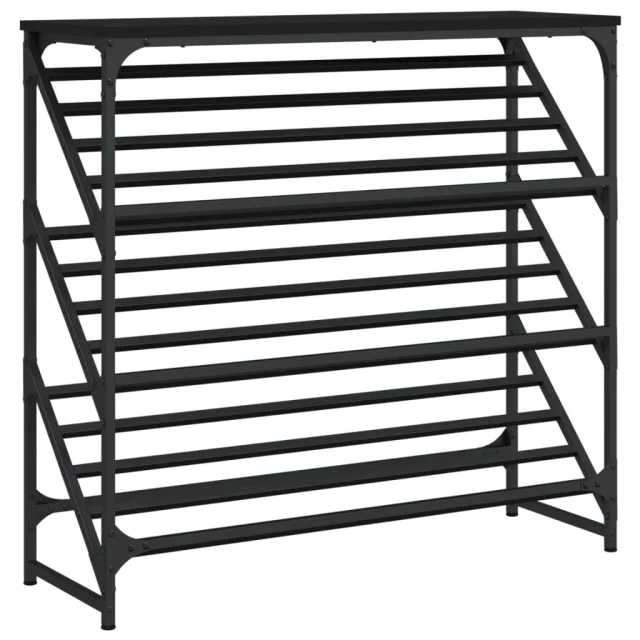 The Living Store Regal za čevlje črn 90x30x85 cm inženirski les - Regal Za Čevlje