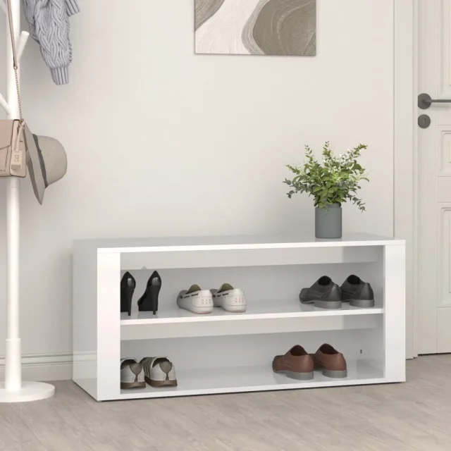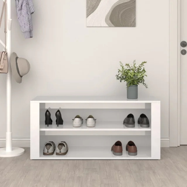 The Living Store Regal za čevlje visok sijaj bel 100x35x45 cm inženirski les - Stojalo Za Čevlje