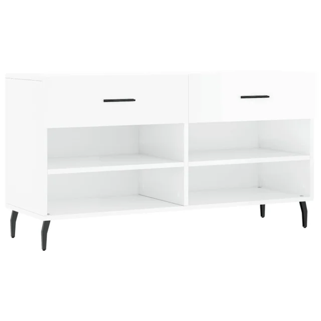The Living Store Regal za čevlje visok sijaj bel 102x35x55 cm inženirski les - Klop Za Čevlje