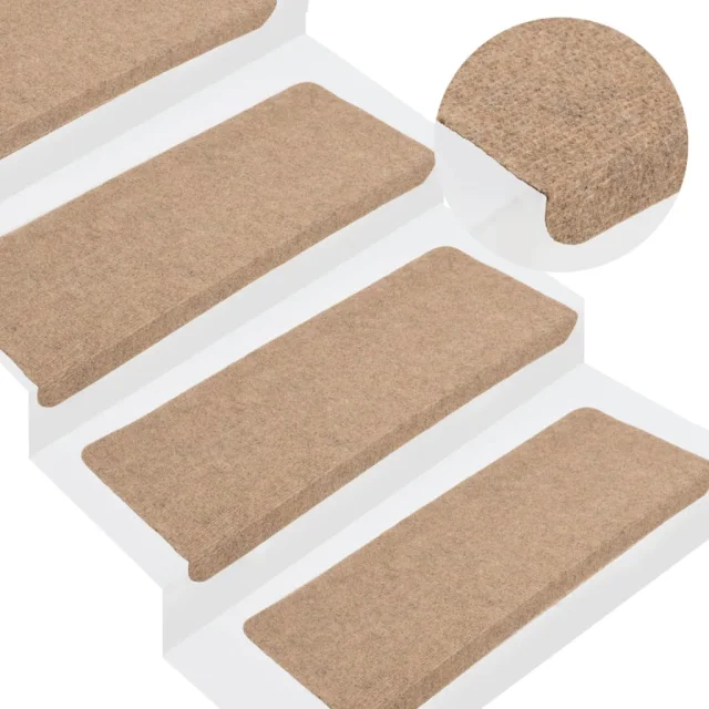 The Living Store Samolepilne preproge za stopnice 15 kosov 65x24,5x3,5 cm bež - Preproga Za Stopnice