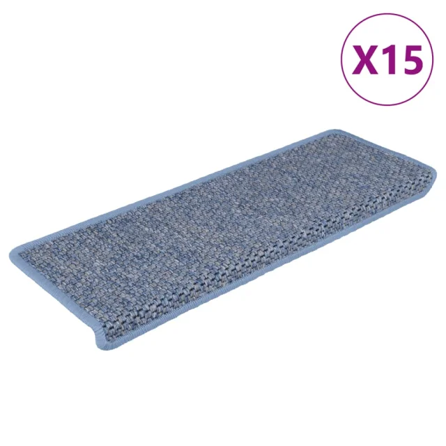 The Living Store Samolepilne preproge za stopnice sisal 15 kosov 65x21x4cm modre - Preproga Za Stopnice