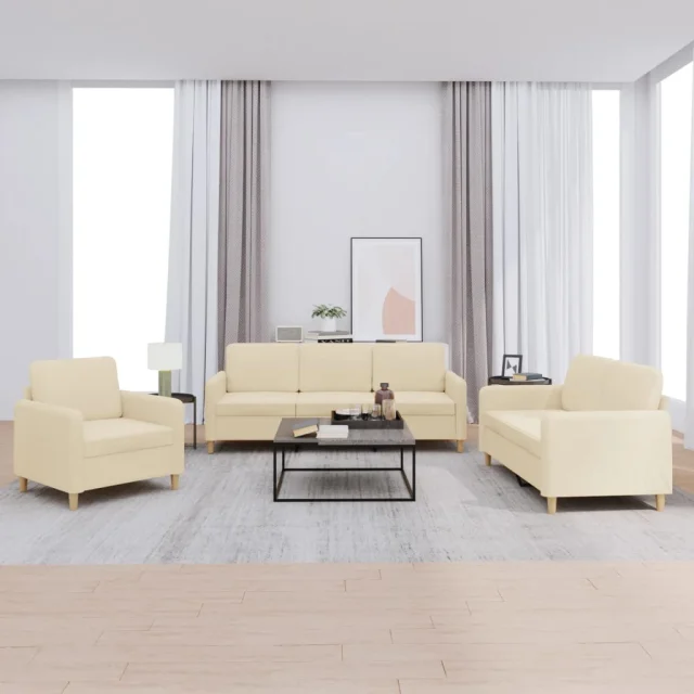 The Living Store Sedežna garnitura 3-delna z blazinami krem blago - Sedežna Garnitura