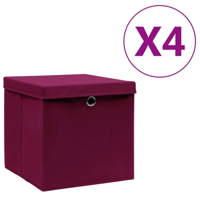 The Living Store Škatle s pokrovi 4 kosi 28x28x28 cm temno rdeče - Škatla