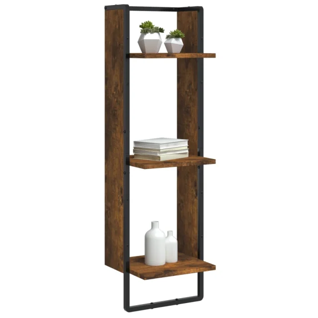 The Living Store Stenska polica 3-nadstropna dimljeni hrast 30x25x100cm inž. les - Stenska Polica