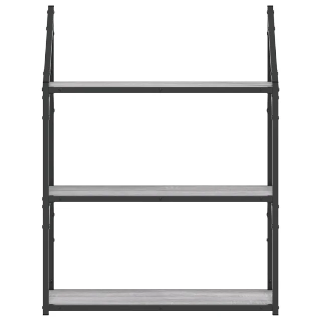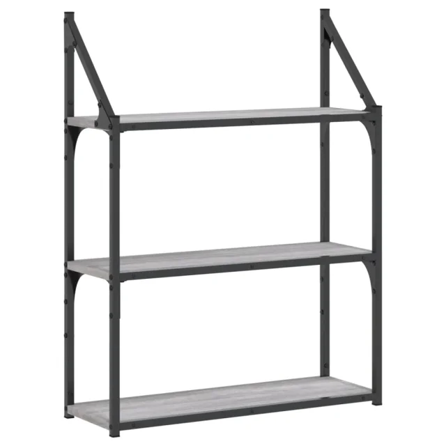 The Living Store Stenska polica 3-nadstropna siva sonoma 60x21x78,5 cm inž. les - Stenska Polica