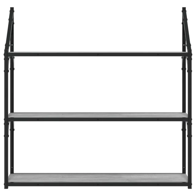 The Living Store Stenska polica 3-nadstropna siva sonoma 80x21x78,5 cm inž. les - Stenska Polica