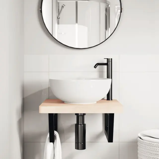 The Living Store Stenska polica za umivalnik jeklo in trdna bukovina - Polica Za Umivalnik