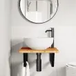 The Living Store Stenska polica za umivalnik jeklo in trdna hrastovina - Polica Za Umivalnik