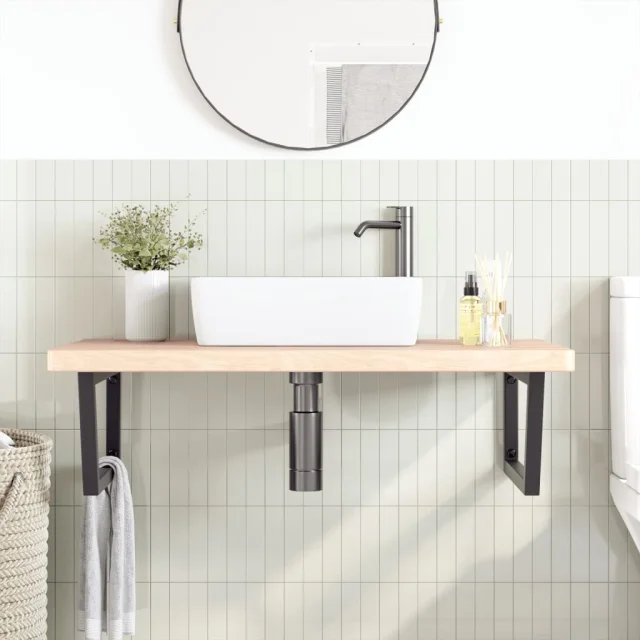 The Living Store Stenska polica za umivalnik jeklo in trdna hrastovina - Polica Za Umivalnik