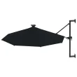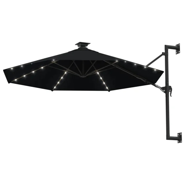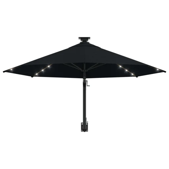 The Living Store Stenski senčnik z LED in kovinskim drogom 300 cm črn - Senčnik