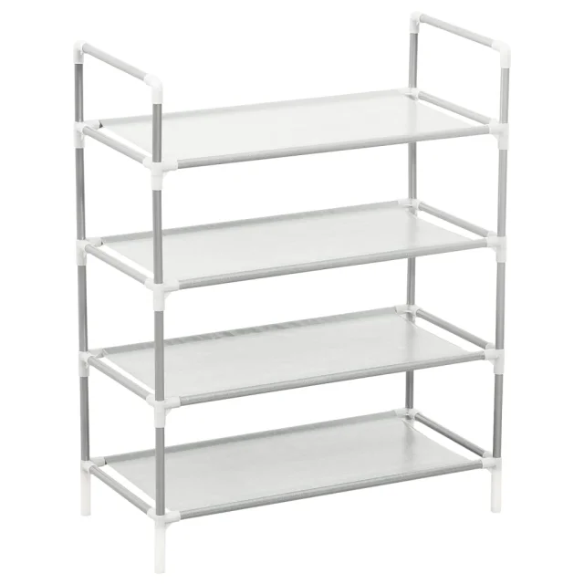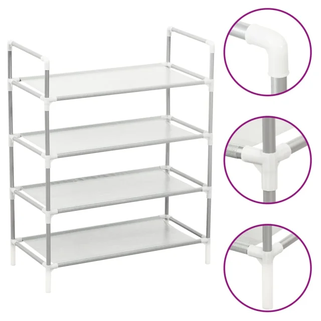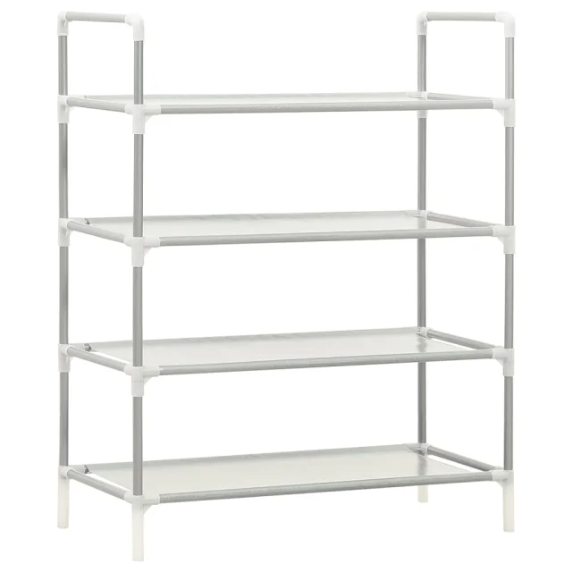The Living Store Stojalo za čevlje s 4 policami kovina in netkano blago srebrno - Stojalo Za Čevlje