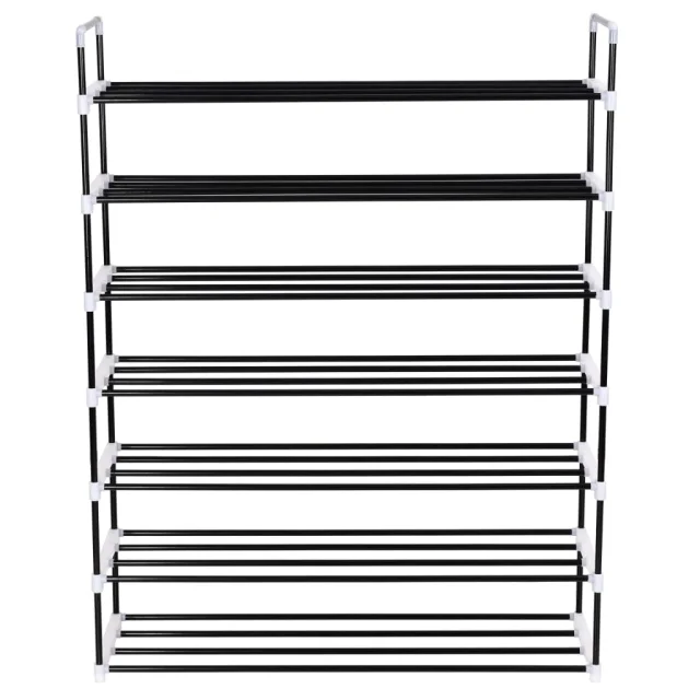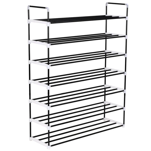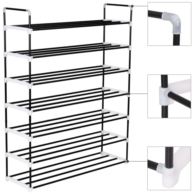 The Living Store Stojalo za čevlje s 7 policami iz kovine in plastike črne barve - Stojalo Za Čevlje