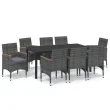 The Living Store Vrtna jedilna garnitura 9-delna z blazinami poli ratan siva - Jedilna Garnitura