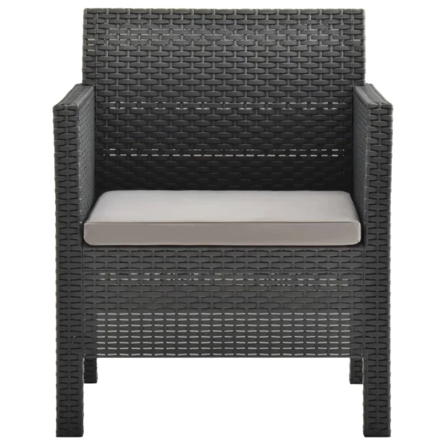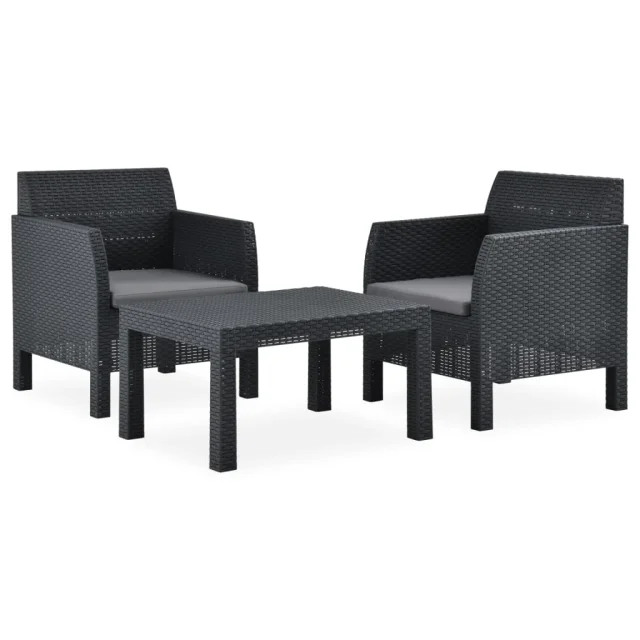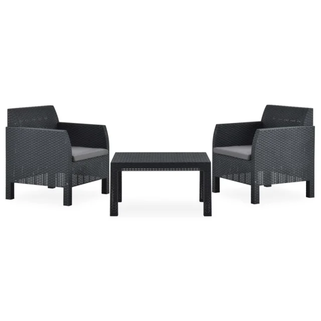 The Living Store Vrtna sedežna garnitura 3-delna z blazinami PP ratan antracitna - Vrtna Sedežna Garnitura