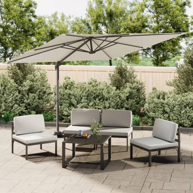 The Living Store Vrtni senčnik z aluminijastim drogom peščeno bel 300x300 cm - Vrtni Senčnik