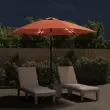 The Living Store Vrtni senčnik z LED lučkami in jeklenim drogom 300 cm terakota - Senčnik