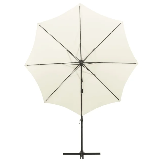 The Living Store Vrtni senčnik z LED lučkami peščen 300 cm - Previsni Senčnik