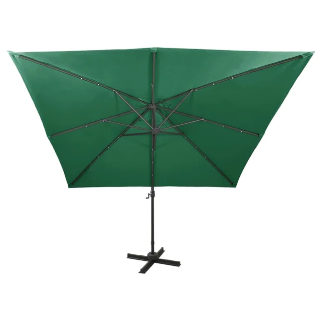 The Living Store Vrtni senčnik z LED lučkami zelen 300 cm - Previsni Senčnik