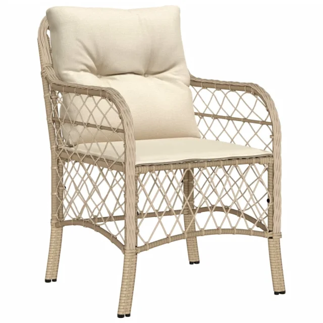 The Living Store Vrtni stol z blazinami 2 kosa poli ratan bež - Vrtni Stol